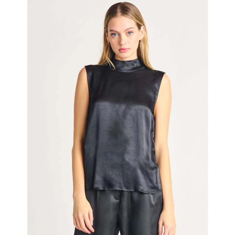 This Black Tape Mockneck Satin Blouse is a stylish and versatile piece for your closet. Its luxe satin fabric is soft and comfortable while the mockneck and clean design offer classic sophistication. Perfect for day or night, this timeless blouse is a must-have staple.