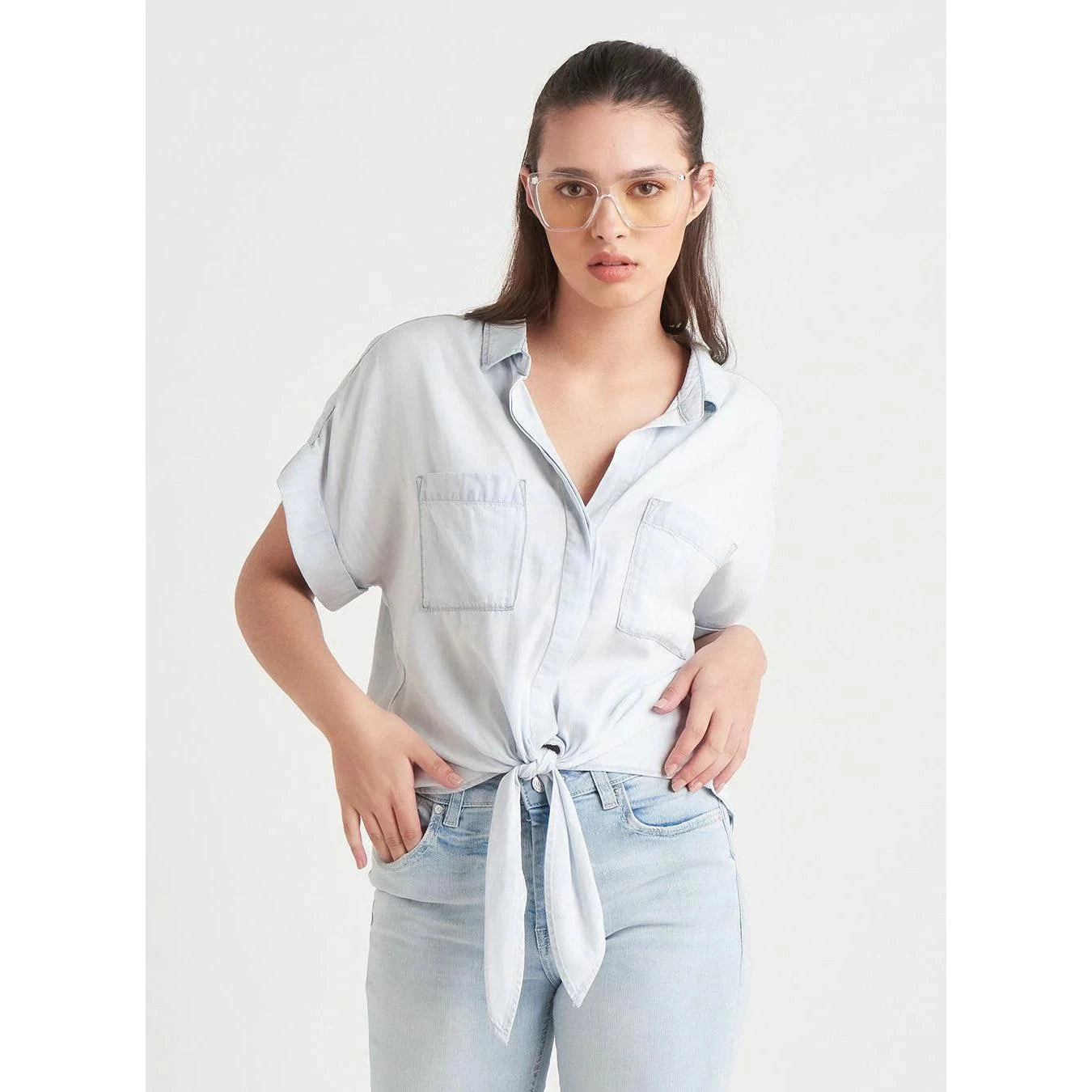 Be the first to review “Black Tape Short Sleeve Tie Front Tencel Blouse” Cancel reply