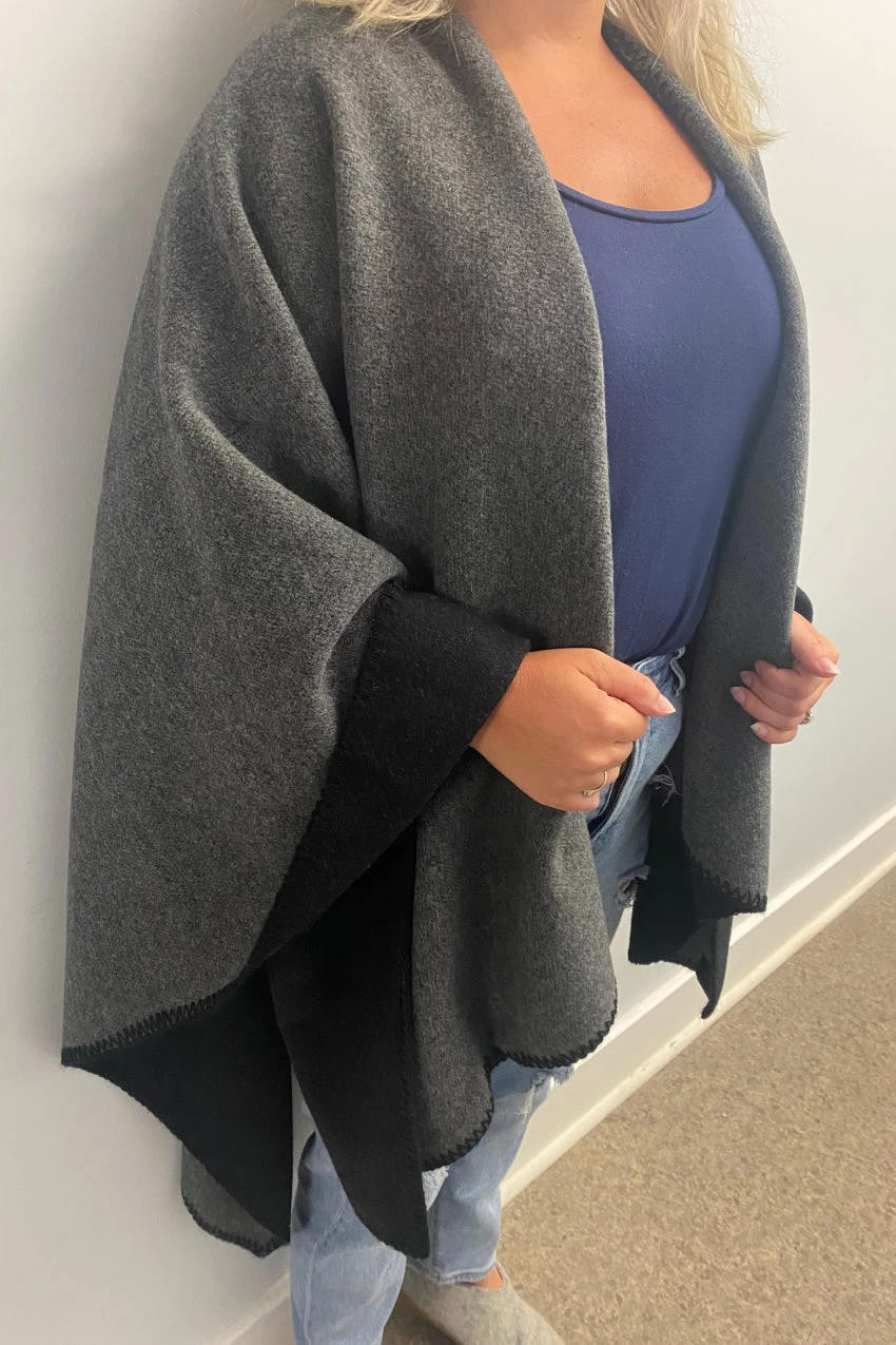 Cozy, reversible black and grey poncho from Canada Goose.Â