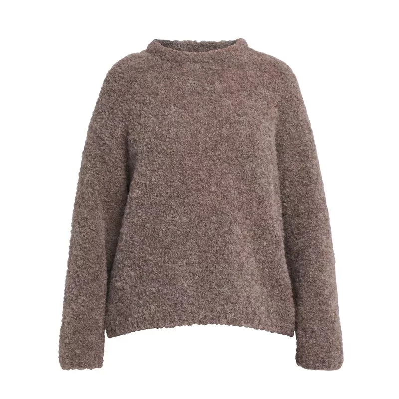 Our favourite from last year is back – now with crew neck! The yarn, made of alpaca, is soft and fluffy. It’s undyed and comes in two earthy colors.