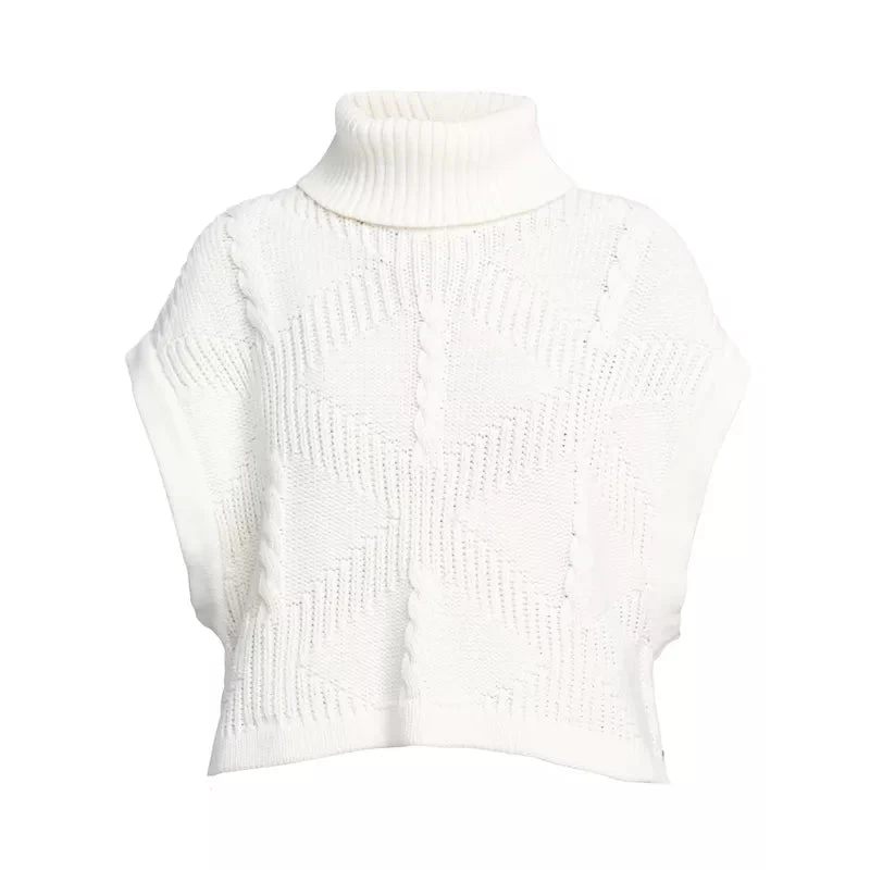 Soft knitted vest with a soft and wide rolled neck. A bit shorter model with an oversized fit. Perfect over a shirt!