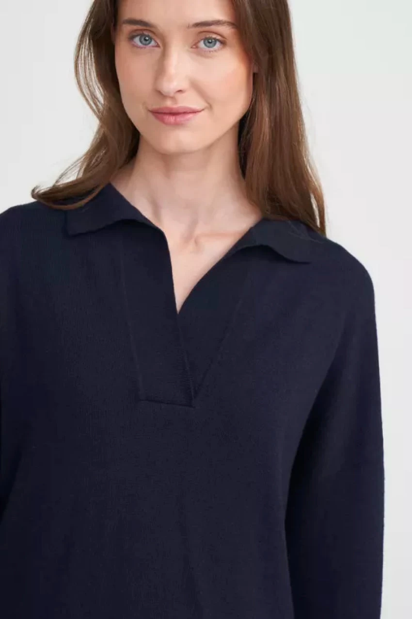 A knitted sweater in super soft extra fine merino wool! Nicely detailed with collar, slits at both sides and a bit wider sleeves.