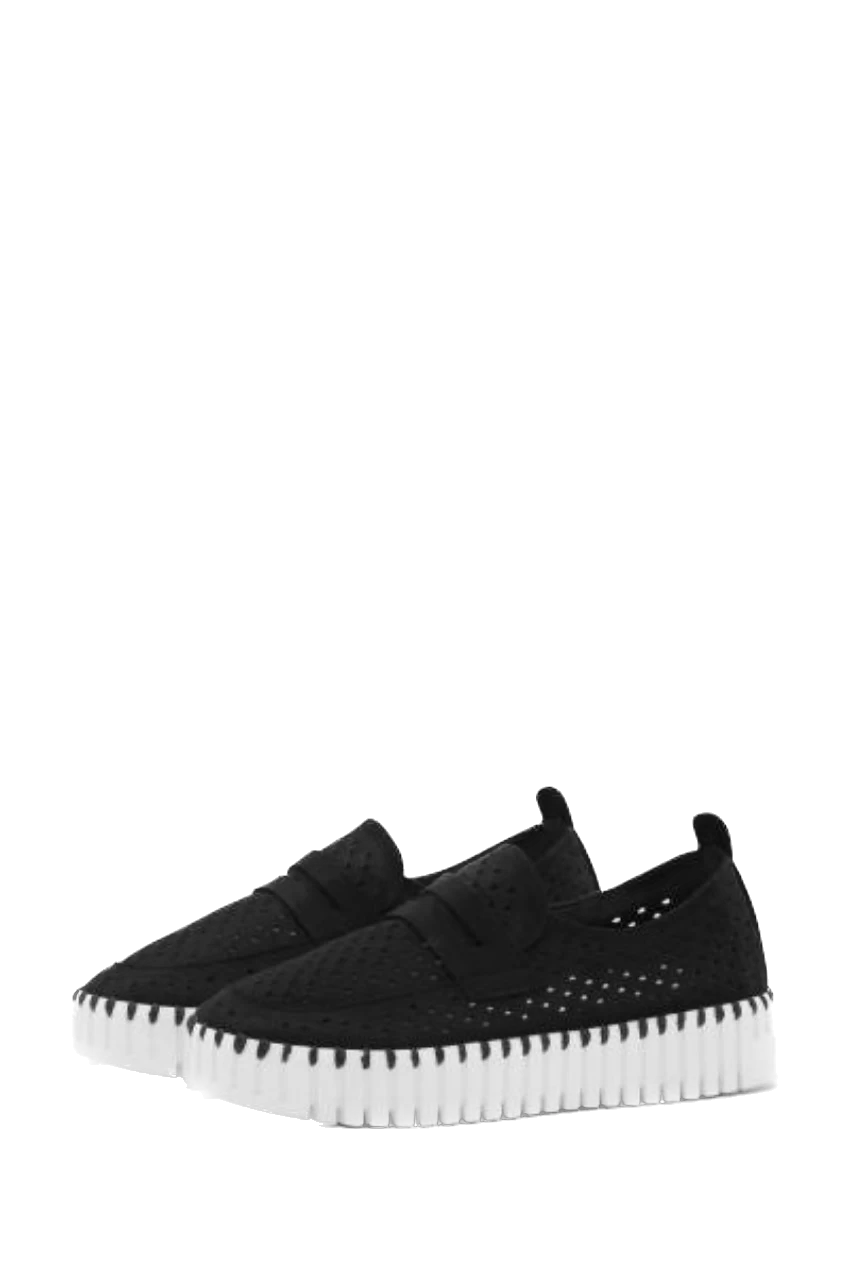 The platform Tulip shoe from Ilse Jacobsen is the perfect flat for all seasons! Crafted of recycled microfiber with a decorative laser cut pattern, this wonder shoe pairs easily with everything from denim to dresses.