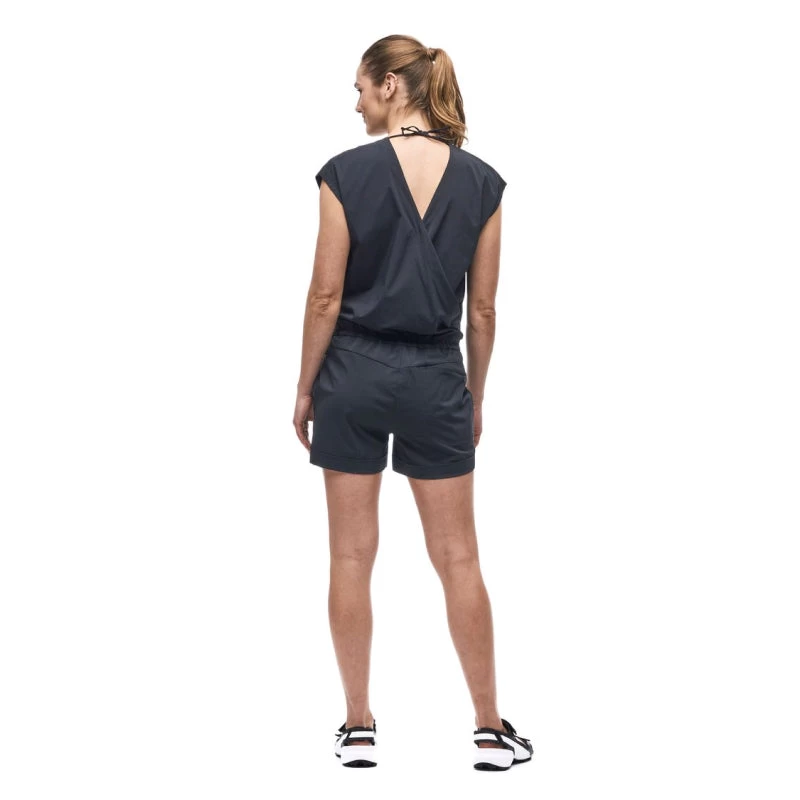 The ESI romper is made of woven stretch fabric that is light, strong, and 2-way stretch. The weave offers ease of movement, dries quickly, wicks moisture and has a UPF rating 50+. The ESI SHORT can be adjusted at the waist to fit your hips perfectly. These features make this romper versatile, great for travel and various outdoor activities.