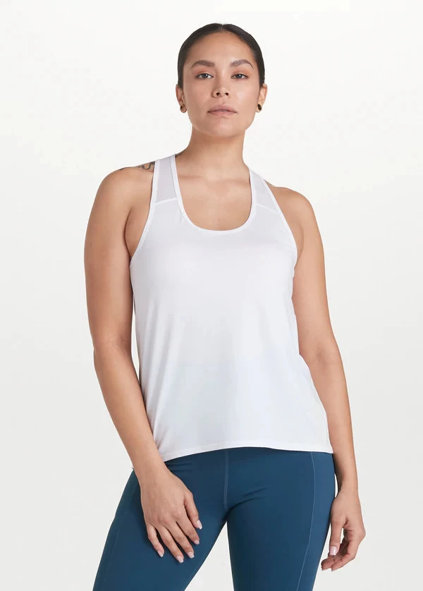 All about high-quality simplicity. The Fancy tank top is a workout top made with sweat-wicking and anti-microbial technology, so you can sweat with confidence. It’s also made with recycled polyester, keeping the environment in mind.