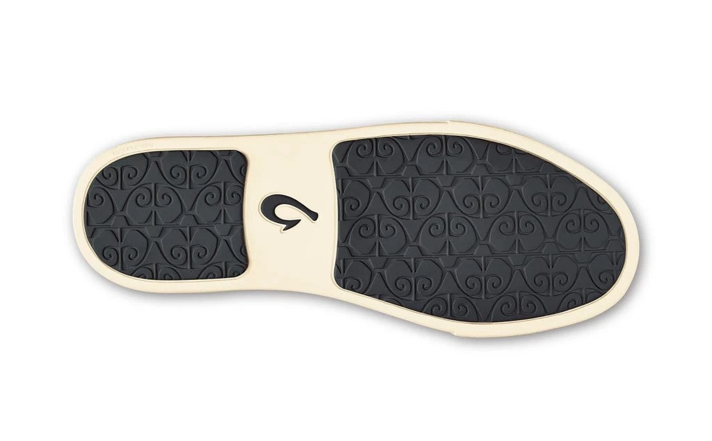 Non-marking rubber outsole with Polynesian inspired artwork design. Leather logo patch with embossed logo detail and decorative sidewall stitching.