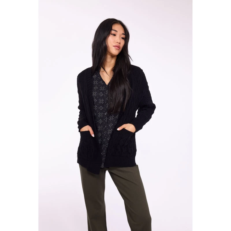 This Pistache Cableknit Cardigan with Pockets is a stylish yet comfortable addition to your wardrobe. The classic cableknit design is timeless and made with soft, lightweight fabric, making it the perfect layering piece. It also features two practical pockets to store your essentials. Enjoy a timeless winter look without compromising on comfort.