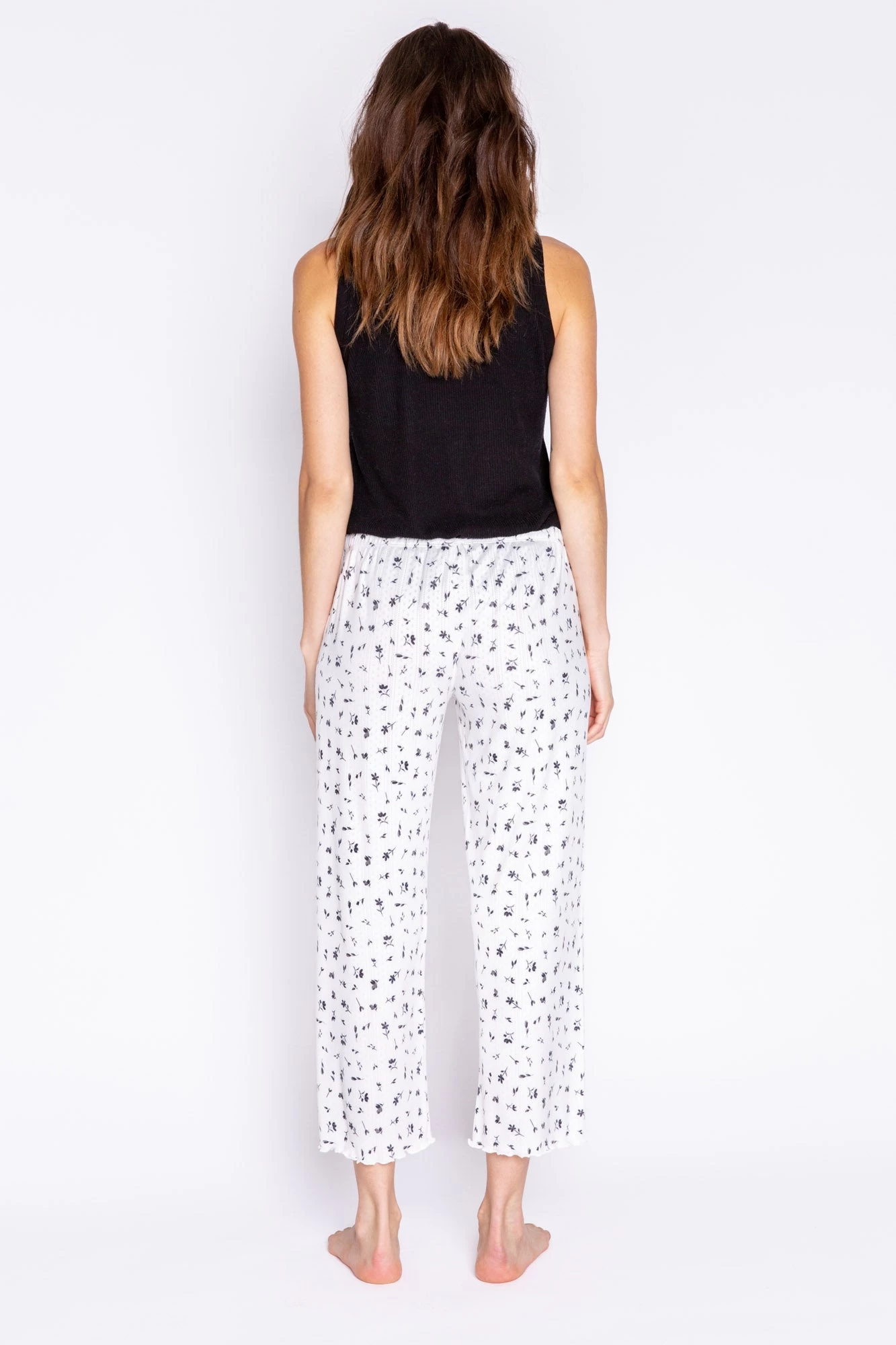 The PJ Salvage Around The Edges Floral Crop Pant features a trendy and feminine floral print that adds a touch of fashion to your loungewear. The cropped length and relaxed fit provide comfort and ease of movement, while the drawstring waistband ensures a customizable fit that flatters any body shape.