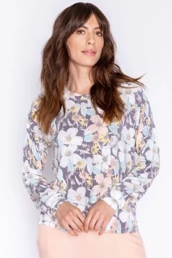 The PJ Salvage Pastel Dreams Floral Long Sleeve top is the perfect addition to any cozy lounge wear collection. Featuring a beautiful floral print in soft pastel colors, this top is as stylish as it is comfortable. Made with high-quality materials, it’s designed to keep you cozy and comfortable all day long.