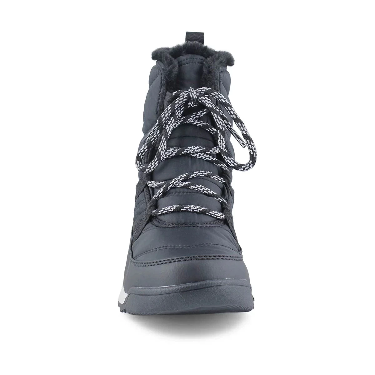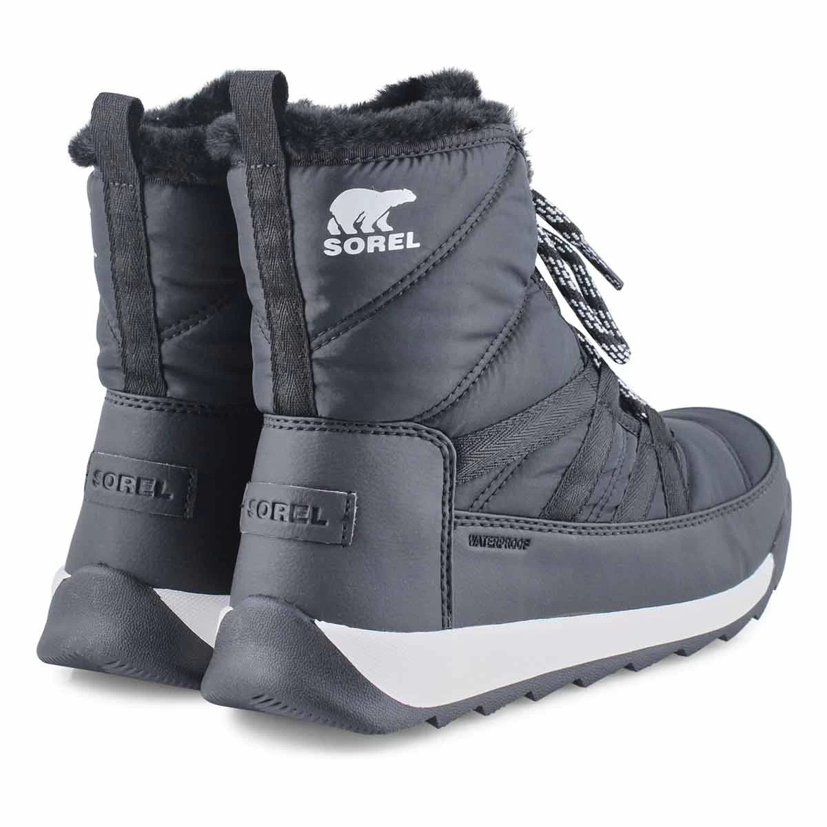 Warmth and unparalleled waterproof protection meets a sporty short boot you can wear anywhere. The Whitney II Short black snow boot from Sorel features a sleek, baffled waterproof textile upper with a waterproof-breathable membrane, as well as 200g insulation to keep your feet warm when you’re walking through a winter wonderland. A soft fleece lining and plush faux-fur trim dial up the cozy factor even further.