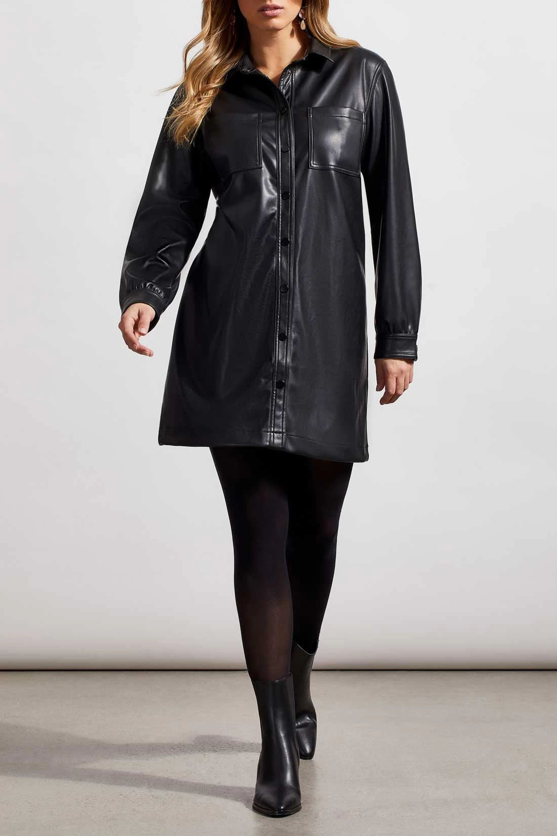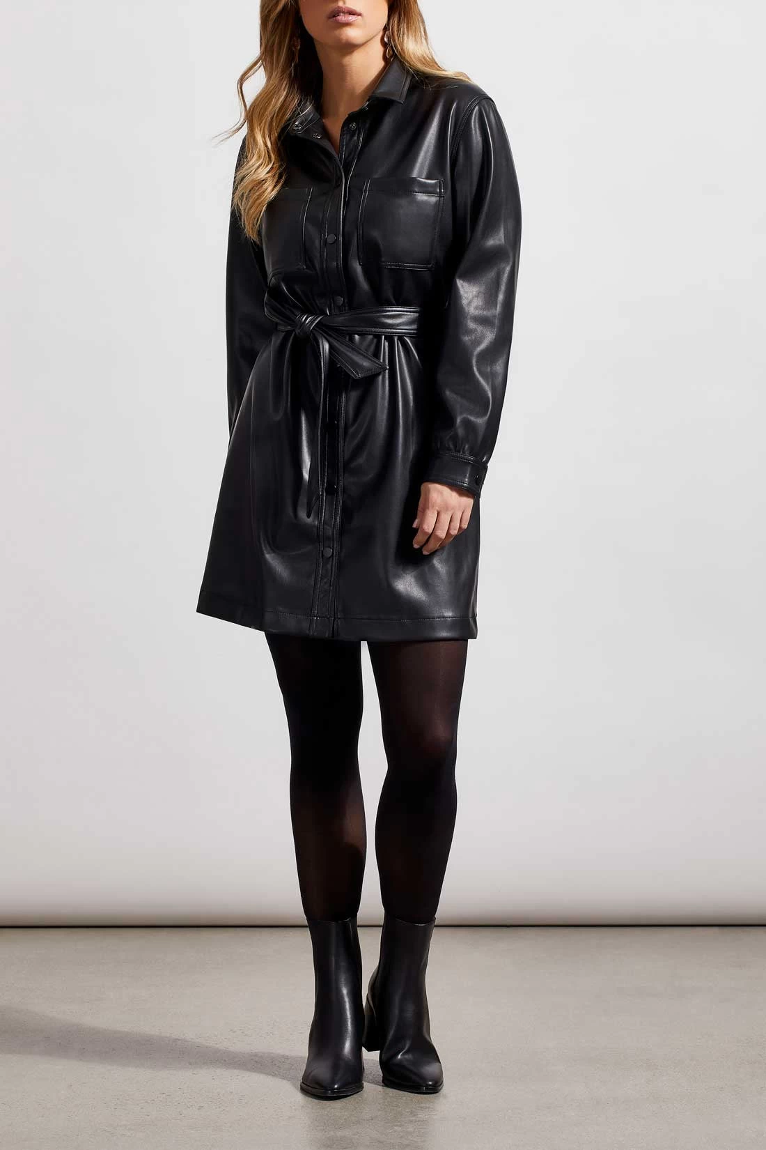 Look beautiful and stylish in this Tribal Long Sleeve Button Up Dress with Belt. The long sleeve dress features a faux leather material with a front button-up closure and a self-tie belt at the waist. The silhouette of this dress will make you look elegant and comfortable.