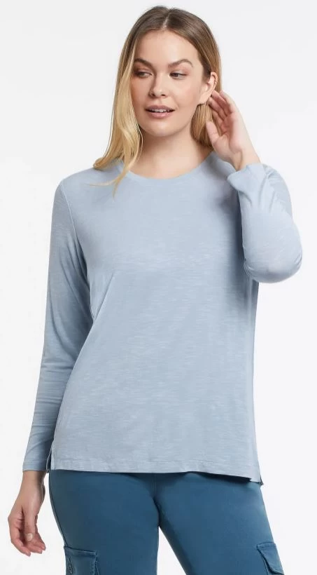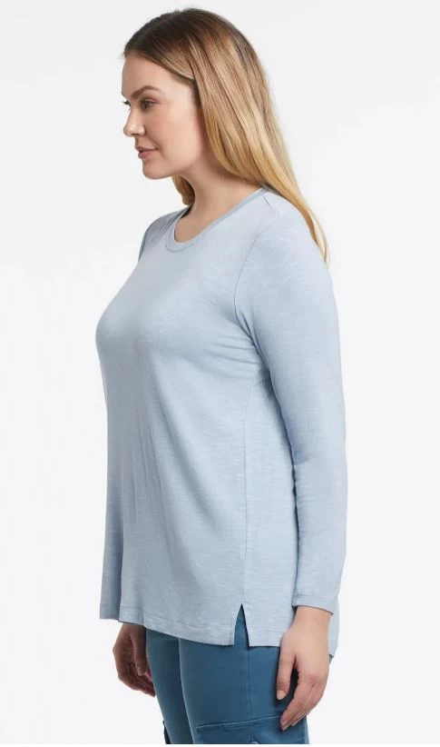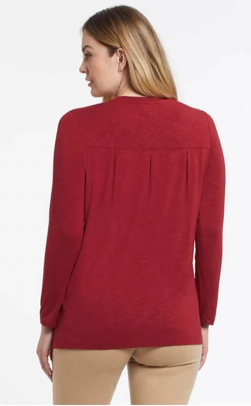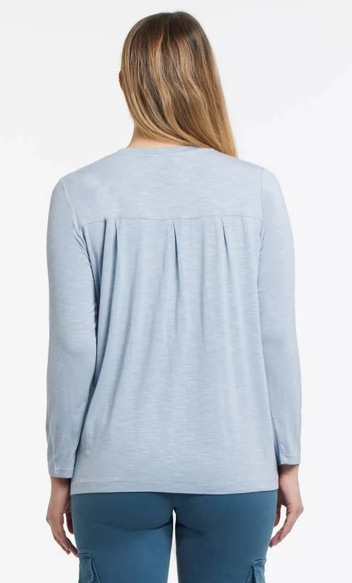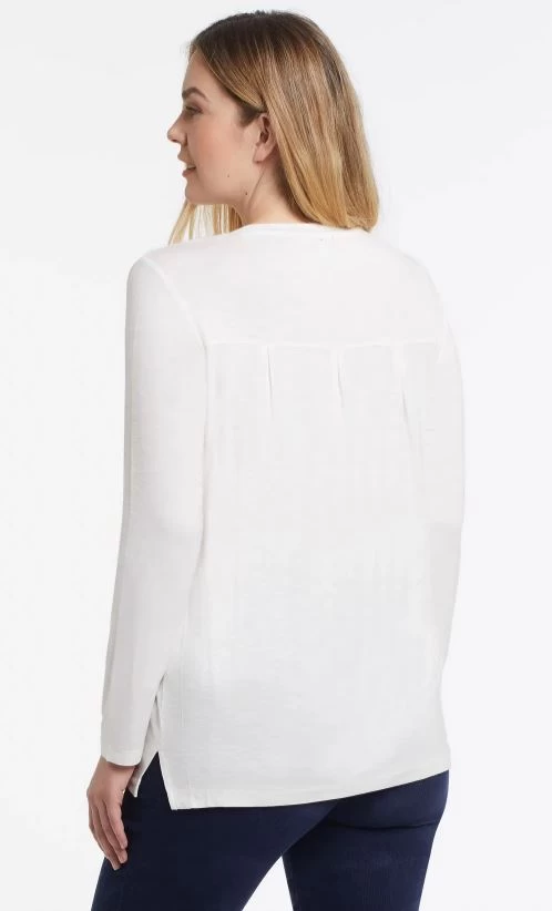 Tribal Long Sleeve Scoop Neck Top With Back Pleats