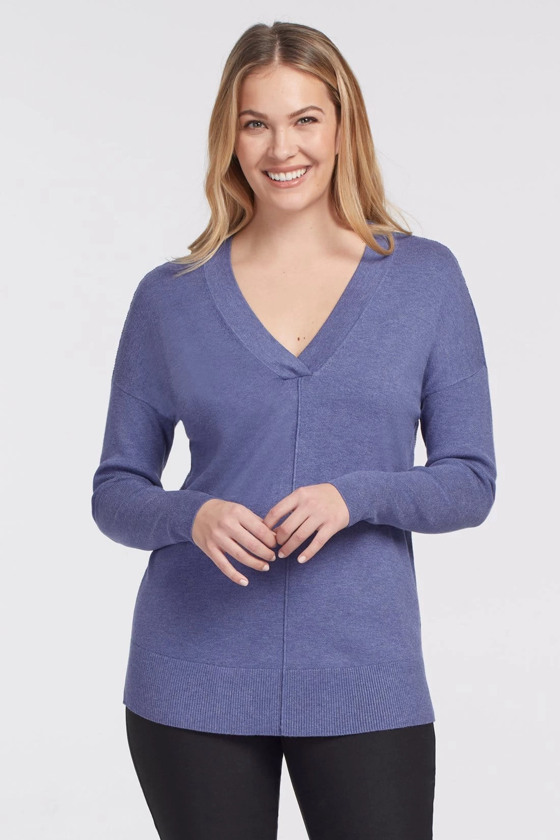 Lightweight knit sweater with a v-neck. Great basic sweater for the season to take you anywhere!