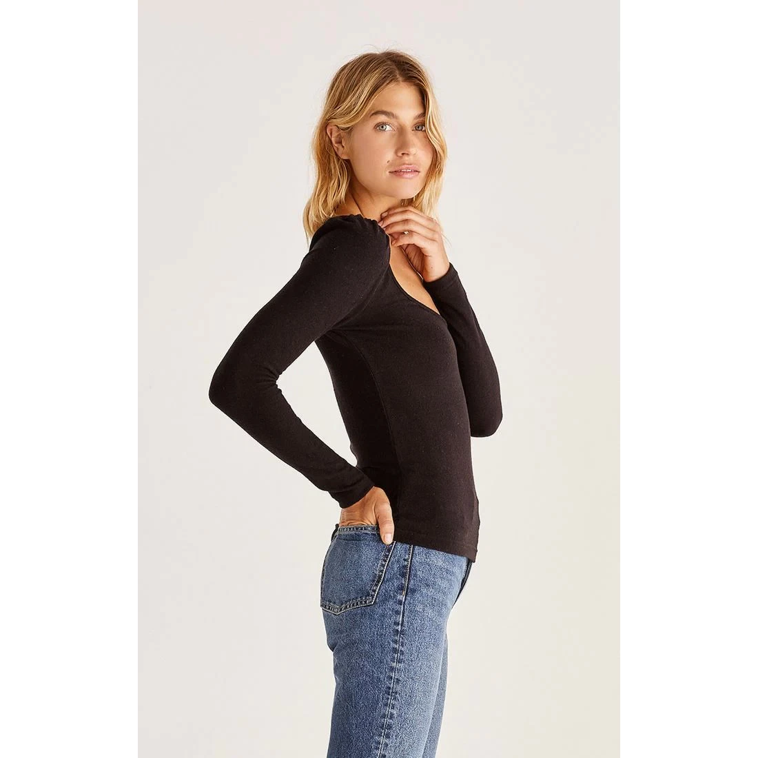 Take this top from day to night. The Storme Marled Top is a must-have with a beautiful, soft fabric, and shirring detail that creates a slight puff at the shoulder. Tuck this top into your high waisted denim for a clean, chic, and classy look.