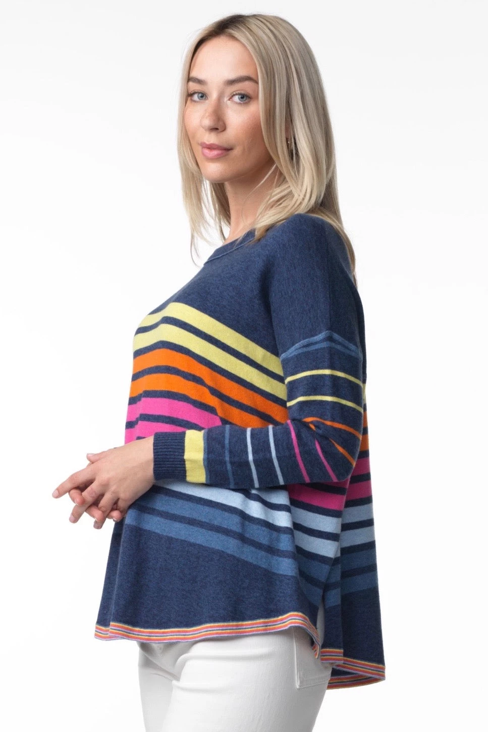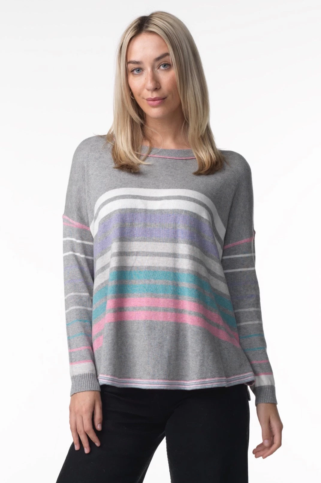 The Zaket & Plover Boxy Stripe sweater features a round neck, and drop shoulder. A curved hem and a deep, overlap split at hem allow for ease of fit through the hip.
